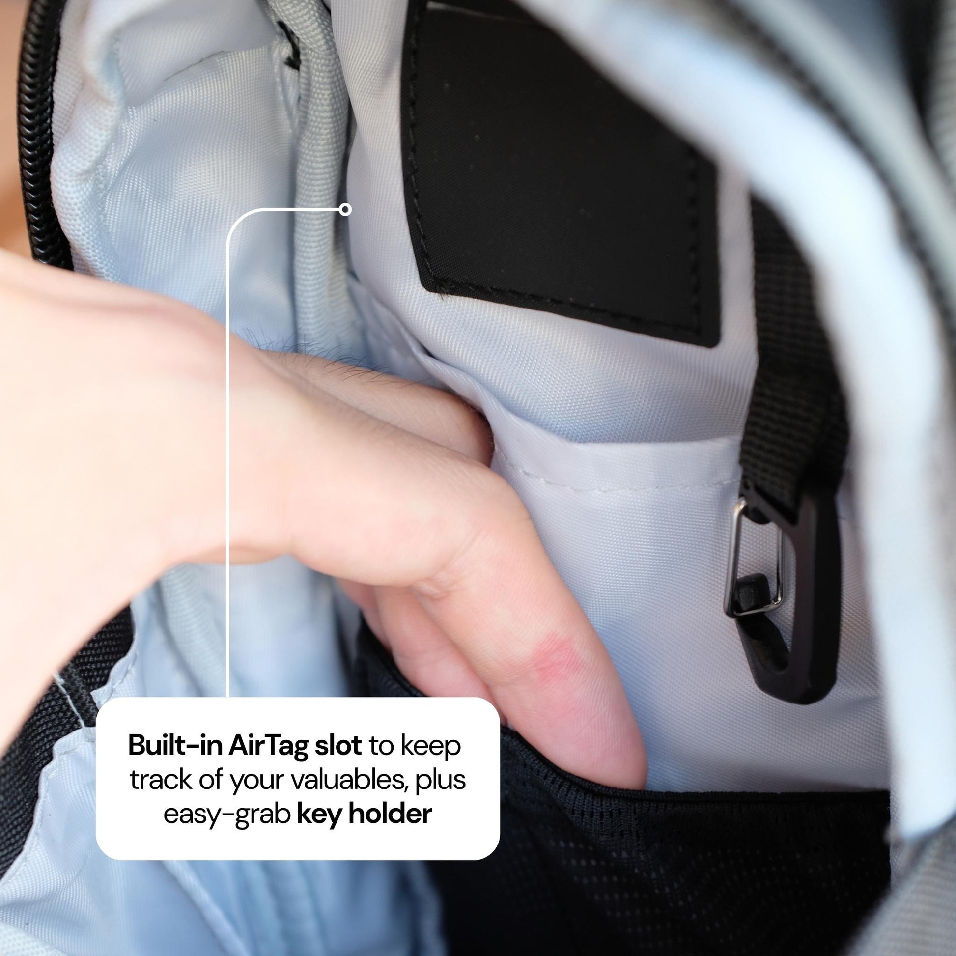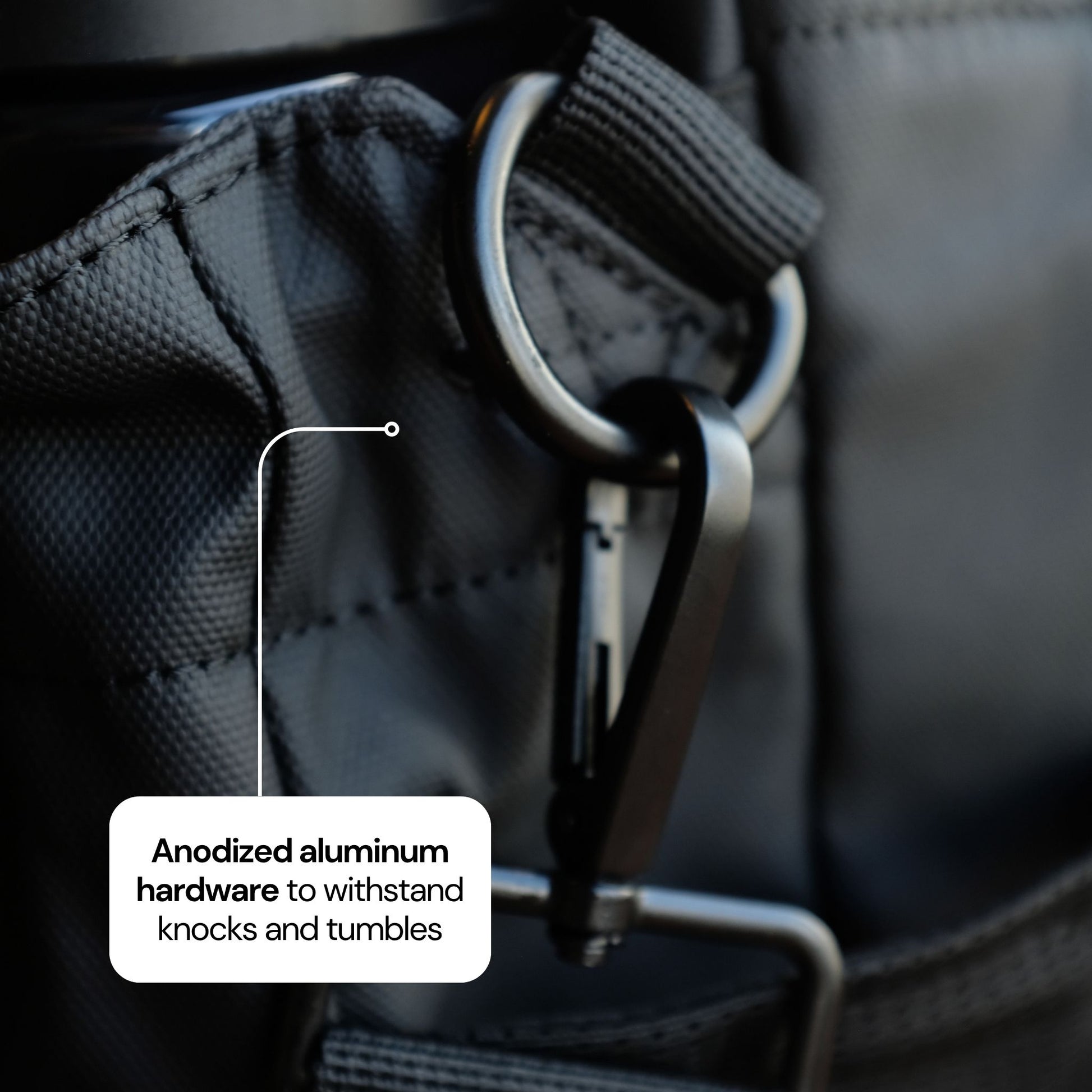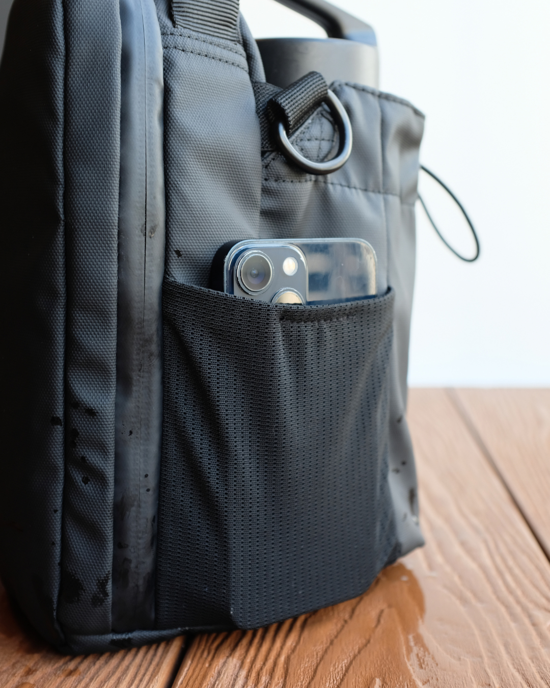 The Rackpack™ is made with splash-proof fabric and zippers, keeping your gear protected from sweat and light rain. It’s not fully submersible in water.