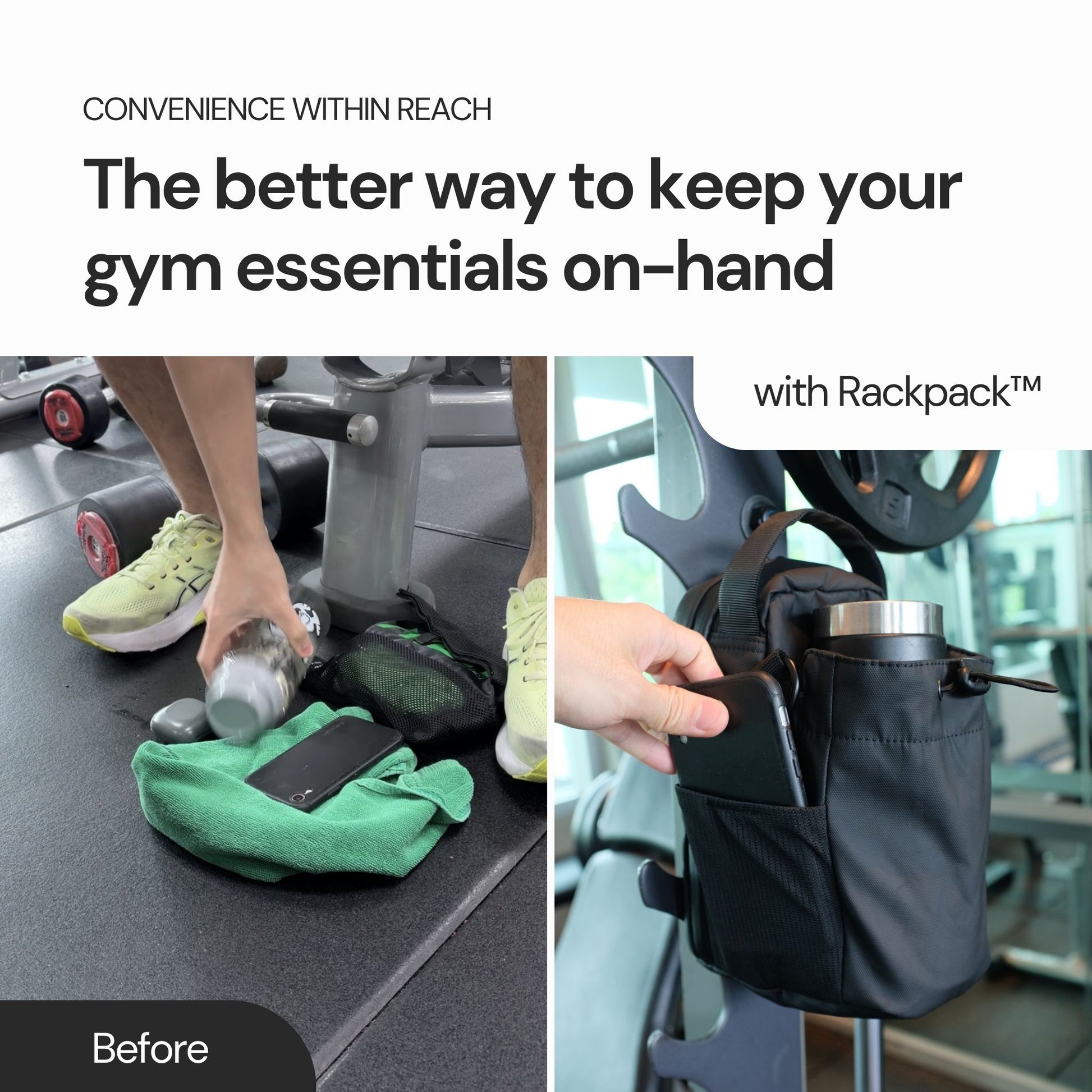 The Rackpack™ magnets holds up to 5kg — more than enough for a full water bottle, phone, AirPods, keys, and wallet together, which usually weigh no more than 2–3kg.